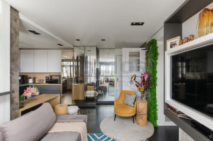 Belíssimo apartamento de 02 dormitórios com suíte, móveis sob medida, andar acima do 10º, boa posição solar, banheiro social, sala de estar, cozinha e sala de jantar, área de serviço, piso laminado e box de estacionamento coberto. O edifício conta com salão de festas completo, playground, portaria 24h e circuito interno de TV. Excelente localização.
