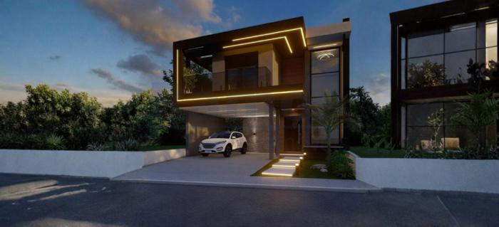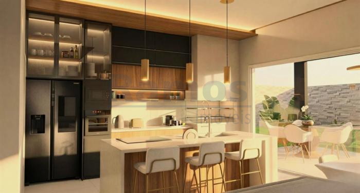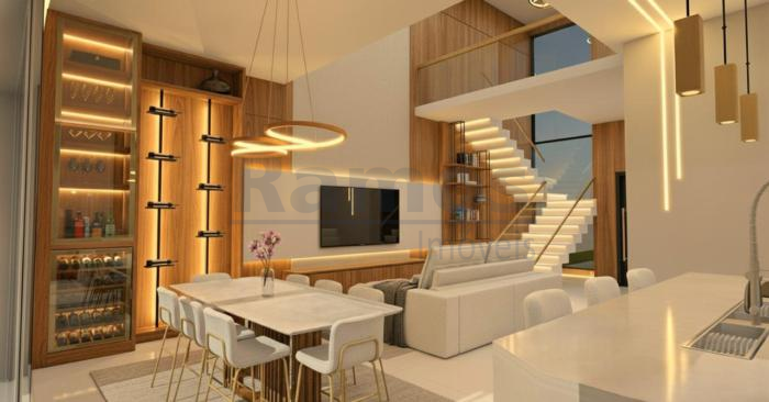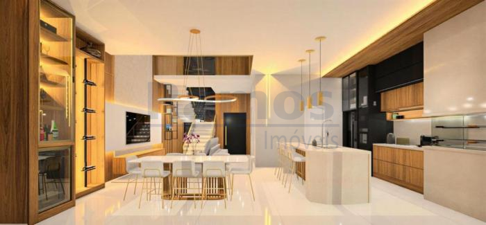 Esta linda casa de alto padrão com 2 pavimentos, dispõe de 03 dormitórios (01 suíte c/ closet e sacada de frente) ampla sala de estar e jantar, cozinha moderna com ilha central e churrasqueira, banheiro social, lavabo, área de serviço, pátio nos fundos e 4 vagas de estacionamento.